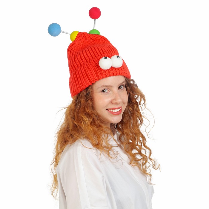 Карнавальная шапка «Глазастик», с рожками р-р 56-58, красная