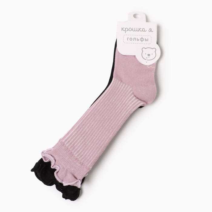 Гольфы для девочки «Крошка Я» BASIC LINE, набор 2 пары, розовые, чёрные, размер 10-12 см (9-12 мес.)