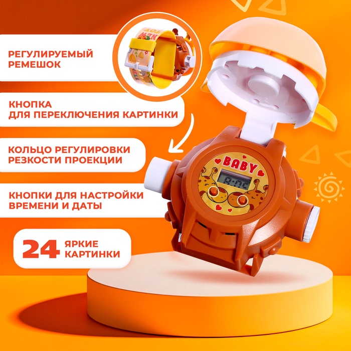 Часы-проектор показывают время и красочные картинки. Малыш научится правильно определять часы и минуты, а также поиграет со встроенным в устройство проектором.