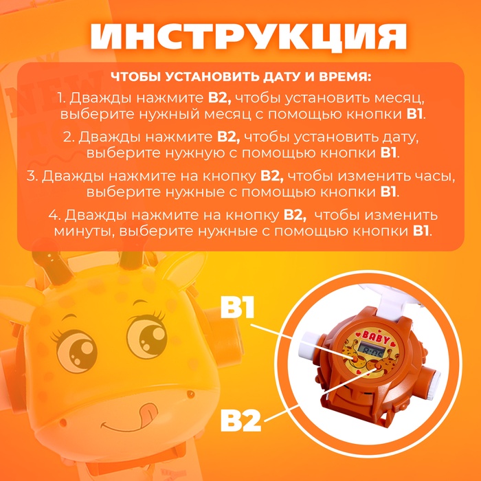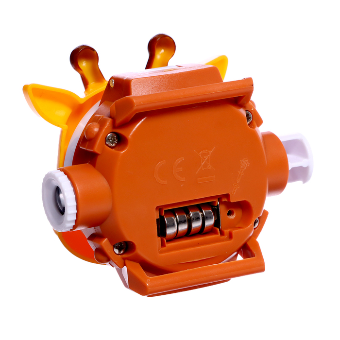 - На экране отображаются часы и минуты. Чтобы посмотреть время, нужно поднять крышку в виде жирафика.