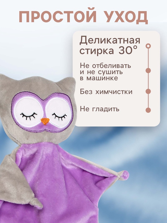 Комфортер — игрушка для сна новорождённых «Совёнок» — мягкая плюшевая игрушка, созданная для спокойного засыпания и ощущения уюта рядом с малышом. Закрытые глазки, плавные линии и приглушённая цветовая гамма формируют образ, который ассоциируется с тишиной и отдыхом.