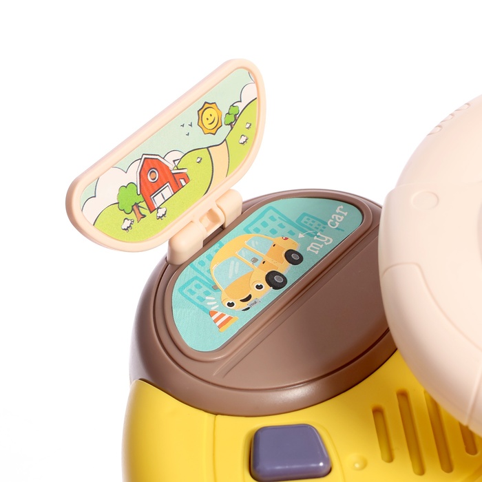 - 10 мелодий и 5 звуков машины — заводите мотор, сигнальте клаксоном, включайте поворотники с характерным щелчком. В левом углу — кнопки для весёлых мелодий, которые превращают руль в мини-синтезатор.