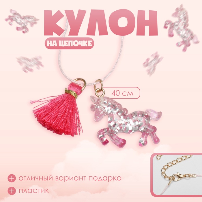 Кулон детский Выбражулька «Единорог», с кисточкой, розовый