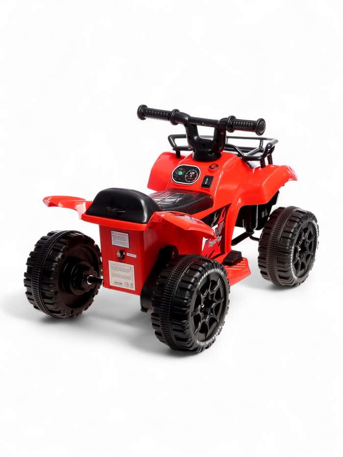 - Надёжность и комфорт: максимальная нагрузка 30 кг гарантирует, что электроквадроцикл выдержит вес ребёнка дошкольного возраста. Прочные пластиковые колёса обеспечивают стабильность и долговечность, а удобное сиденье делает каждую поездку комфортной.