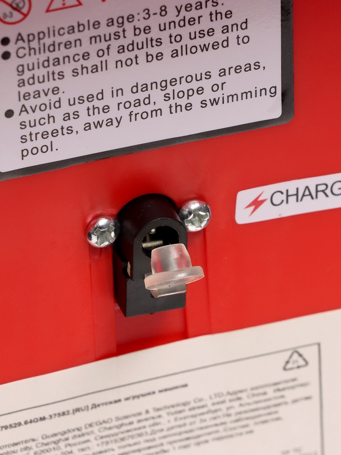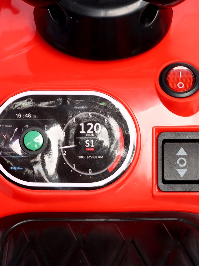 - Яркий дизайн и эффекты: красный цвет корпуса и световые эффекты делают этот квадроцикл заметным и привлекательным. Звуковые эффекты создают атмосферу настоящего внедорожника, добавляя реализма каждой поездке.