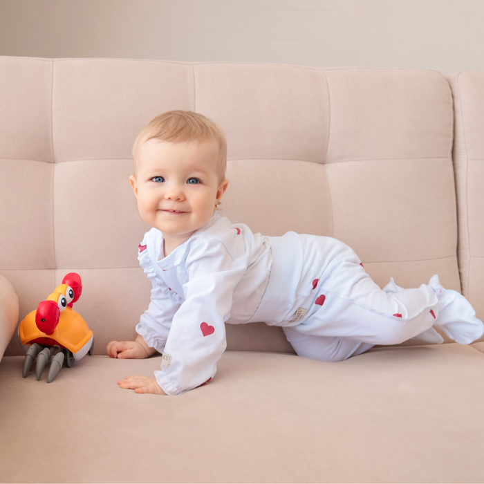 Ползунки детские MINAKU: Сердца, рост 74-80 см, молочные