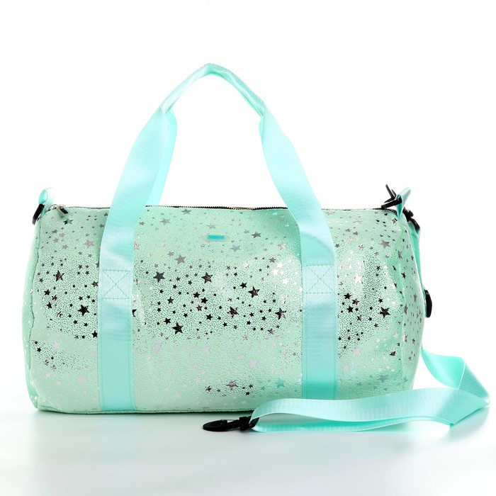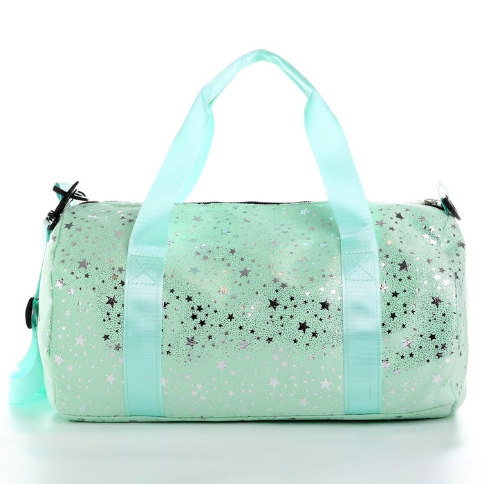 Сумка детская спортивная плюшевая для девочки с блестками «Звёзды», мятный