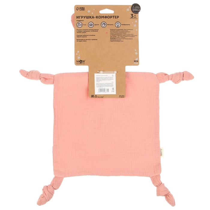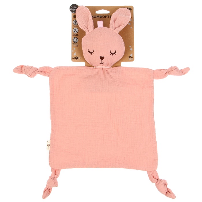 Изделие выполнено из хлопка и муслина — мягких и дышащих материалов, подходящих для ежедневного использования. Простая форма без лишних деталей делает игрушку удобной и безопасной для малыша.