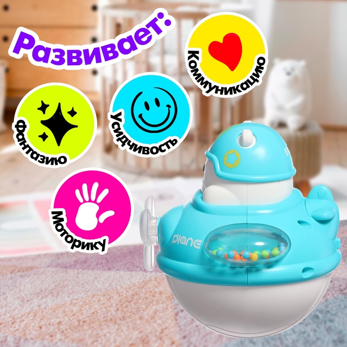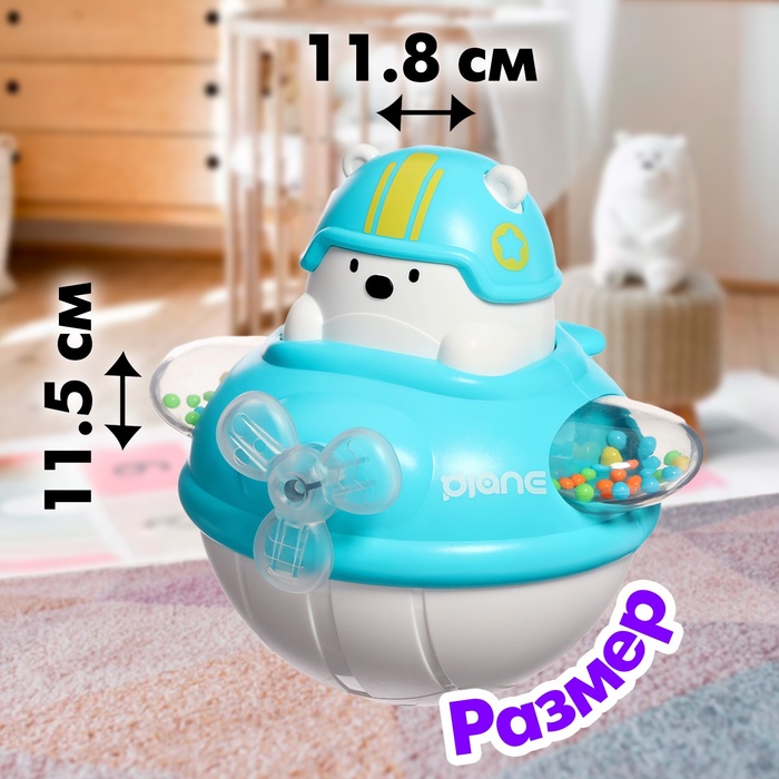 Яркая неваляшка «Мишка-лётчик» — забавная игрушка, которая удивляет малышей весёлыми мелодиями и мягкой подсветкой. Подходит для детей от 3 лет, помогает развивать координацию, слуховое и зрительное восприятие, а также мелкую моторику.