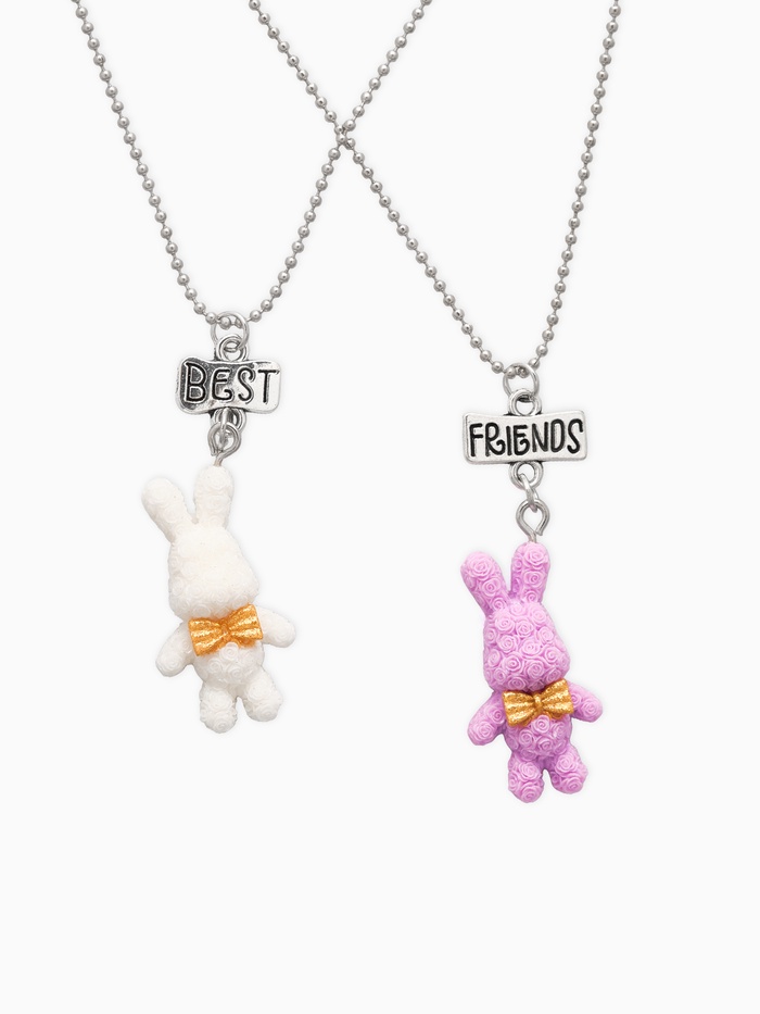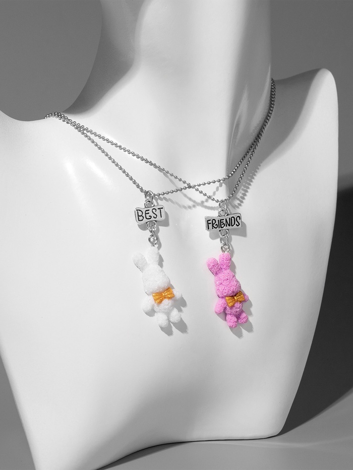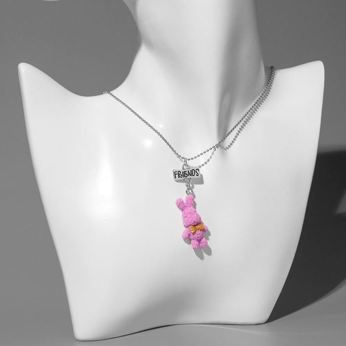 Кулоны парные на цепочке «Зайцы», бело-розовые в серебре, 40 см