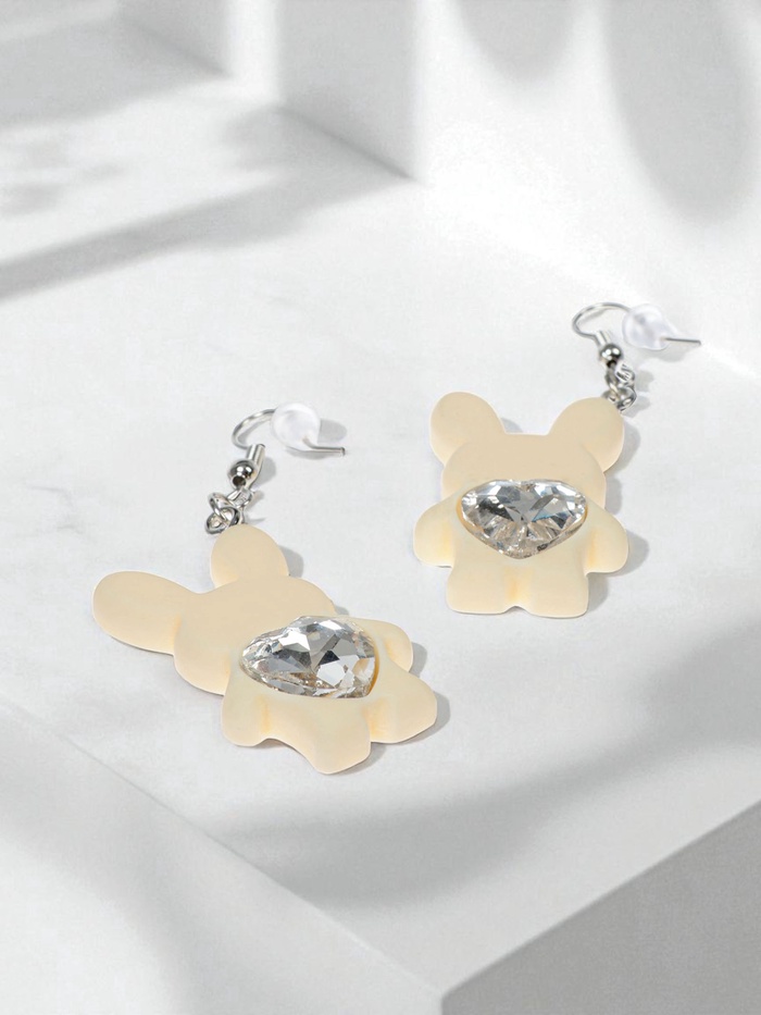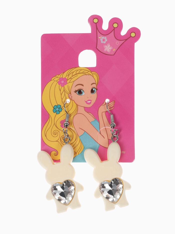 Серьги детские «Выбражулька. Зайчик с сердечком», бело-бежевые