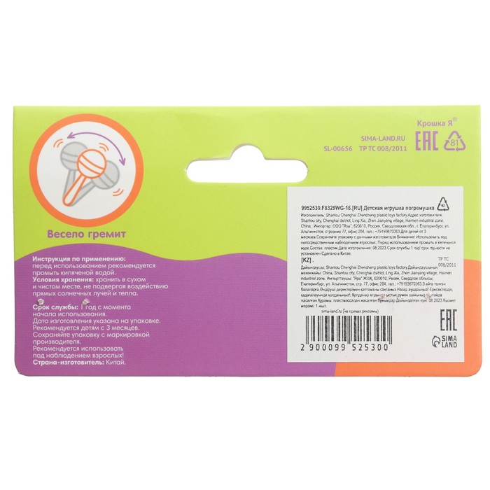 Погремушка Крошка Я «Перкуссионный маракас», шейкер, от 3 мес., МИКС
