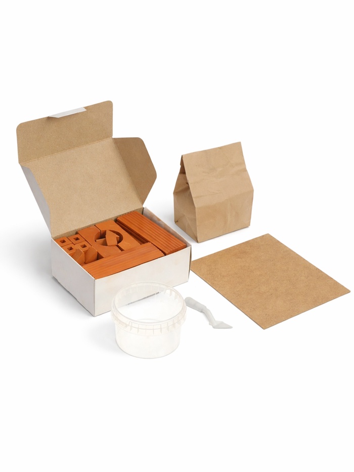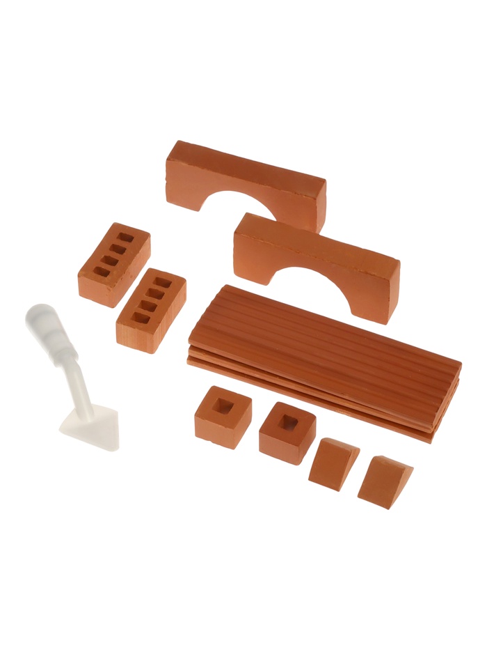 Кирпичики, арки и другие архитектурные детали сделаны из натуральной обожженной глины по той же технологии, что и настоящие, только отличаются меньшим размером.