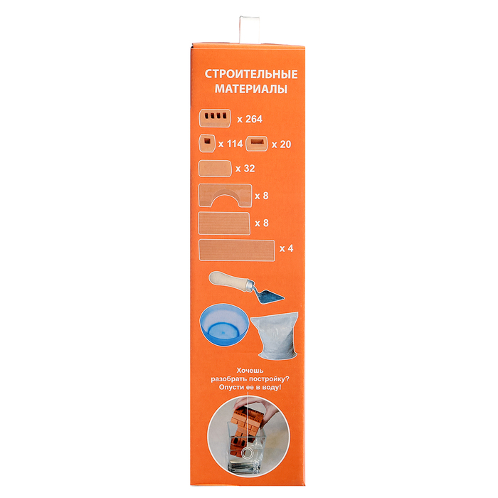 Соединить между собой детали будущей постройки позволит экологически безопасная специальная смесь, которая состоит из речного песка и кукурузного крахмала. Она не только обладает всеми свойствами настоящего цемента, но также позволяет при необходимости несколько раз перестраивать конструктор: достаточно готовую постройку поместить на 2-3 часа в воду, и все кирпичики снова отделятся друг от друга.