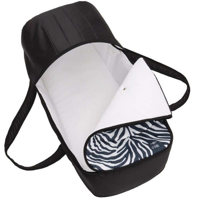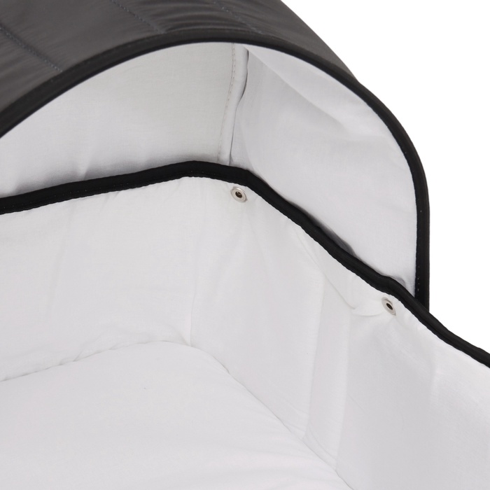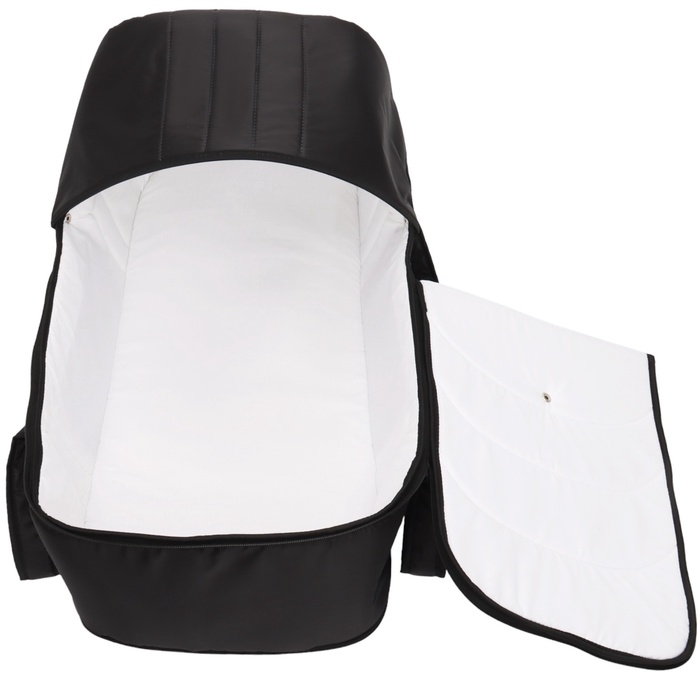 Люлька имеет съемный козырек/капюшон на кнопках, который помогает защитить вашего малыша от дождя, ветра и солнца. Так же люлька дополнительно оснащена ветрозащитным отворотом. Накидка на двух молниях поможет легко и удобно поместить малыша в переноску либо вынуть его из неё. Для большего комфорта и удобства в дно переноски вставлена жесткая вставка из ДВП. Мягкие ручки позволят рукам не испытывать дискомфорт при транспортировке.