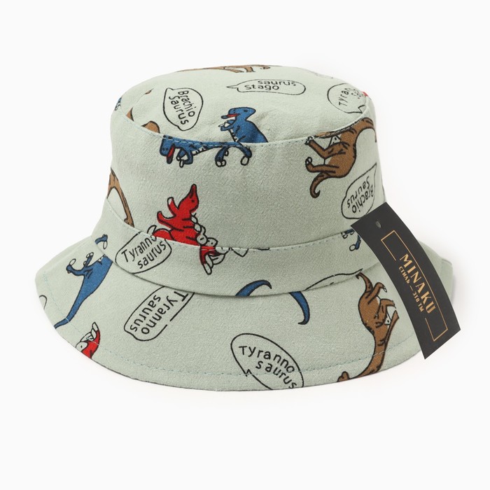 Панама детская MINAKU «Динозавры», размер 49-50, зелёная