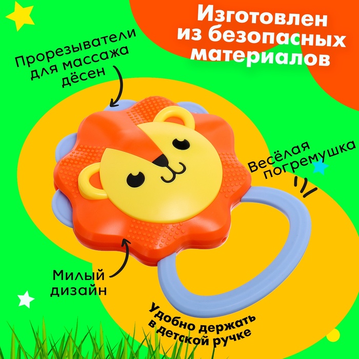 Погремушка с прорезывателем для зубов «Лёвушка» разработана специально для малышей с рождения. Игрушка привлечёт внимание милым дизайном, яркими цветами, и надолго займёт малыша.