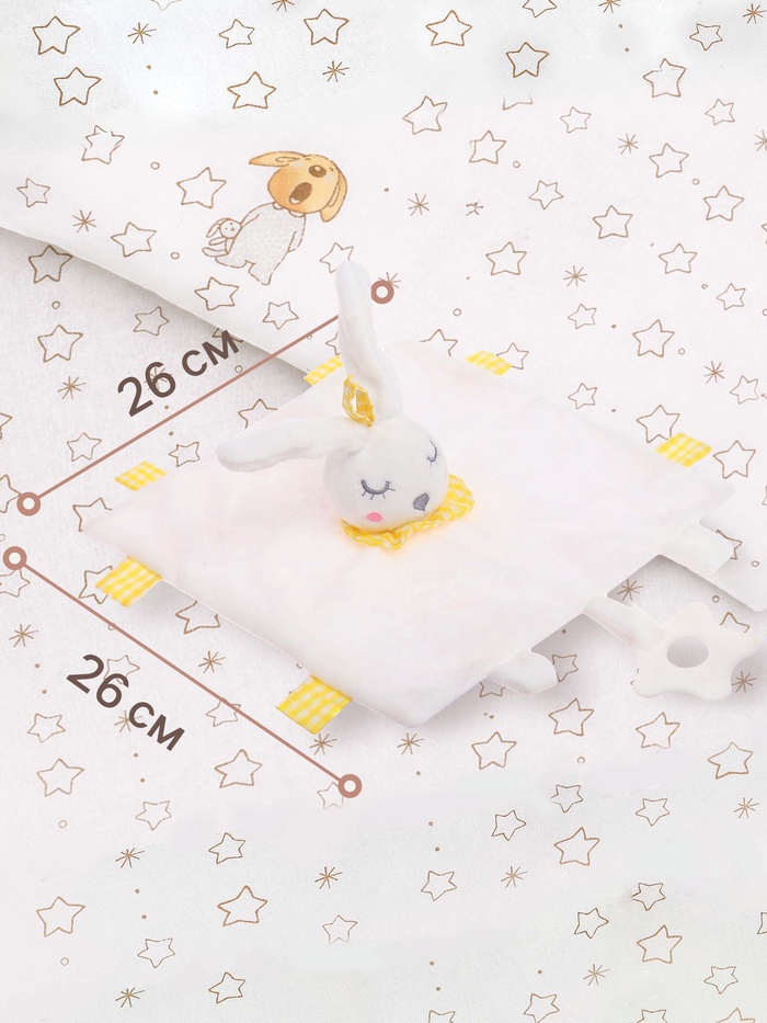 Игрушка-комфортер помогает создать спокойную и уютную атмосферу для малыша. Она подходит для сна, отдыха и первых игр, поддерживает эмоциональный комфорт и становится знакомым, любимым предметом рядом с ребёнком.