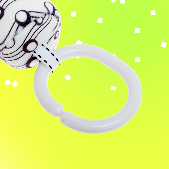 Подвеска помогает развивать слуховое и зрительное восприятие ребёнка. Игрушка легко крепится к любой поверхности, что делает её универсальным решением для дома и прогулок.