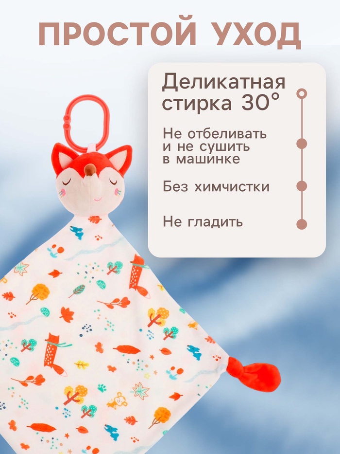 Подвеска-комфортер «Лисичка» — практичный и уютный аксессуар для малыша, который сопровождает его дома и на прогулке. Она помогает создать спокойную атмосферу, удерживает внимание ребёнка и становится знакомым, любимым предметом рядом.