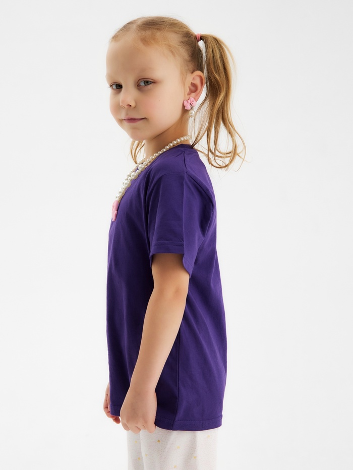 Футболка для девочки однотонная ATA kids, фиолетовая, рост 116 см