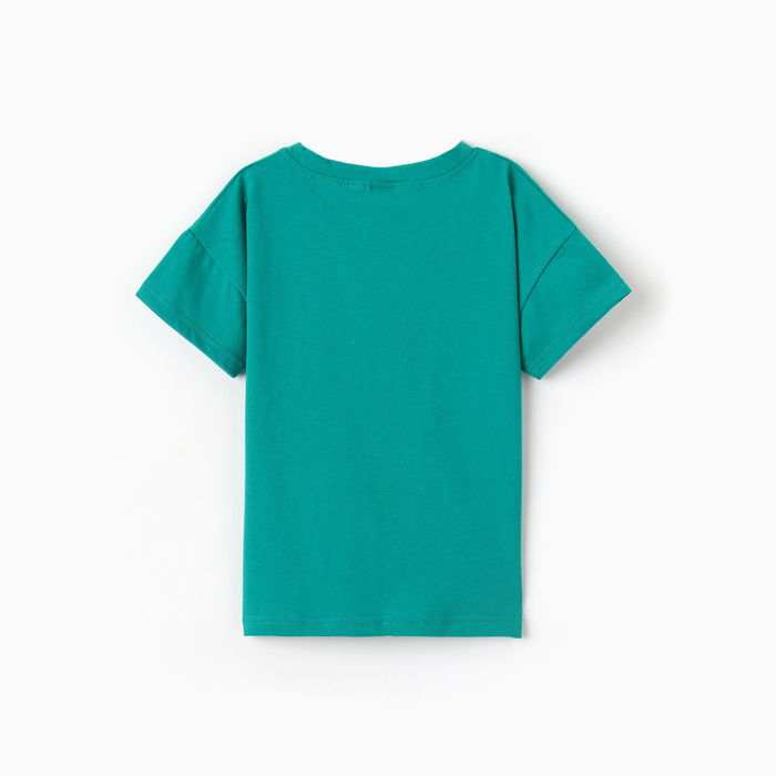 Футболка детская со спущенным плечом, зеленая, рост 104 см