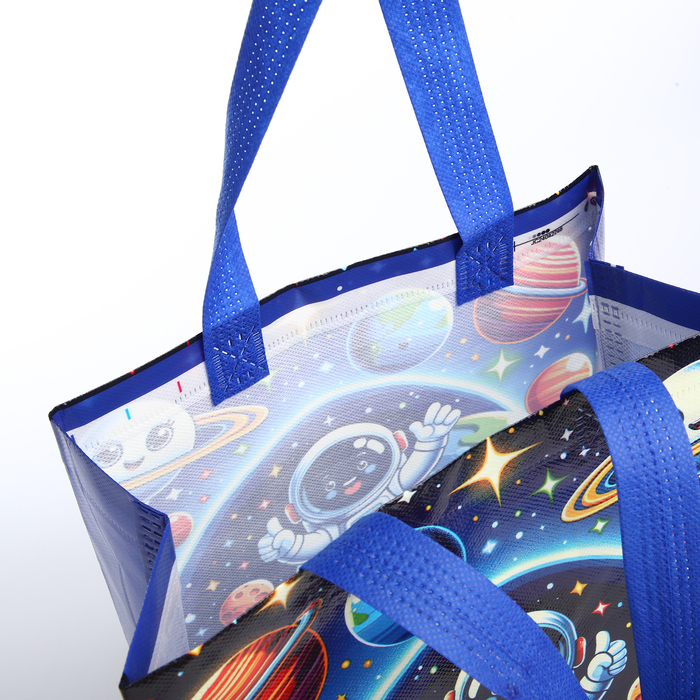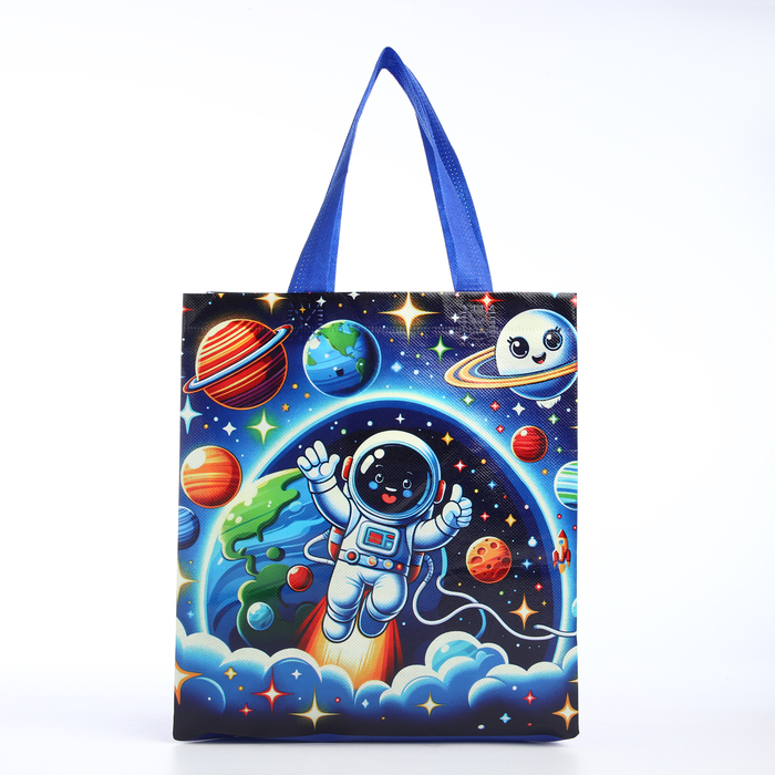 Детская сумка-шоппер станет верным спутником в маленьких, но важных приключениях. Её просторное основное отделение легко вместит всё необходимое для прогулки, похода в садик или на дополнительные занятия. Синий цвет с космическим принтом понравится и мальчикам, и девочкам, пробуждая интерес к звёздам и планетам.