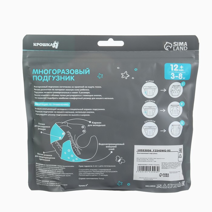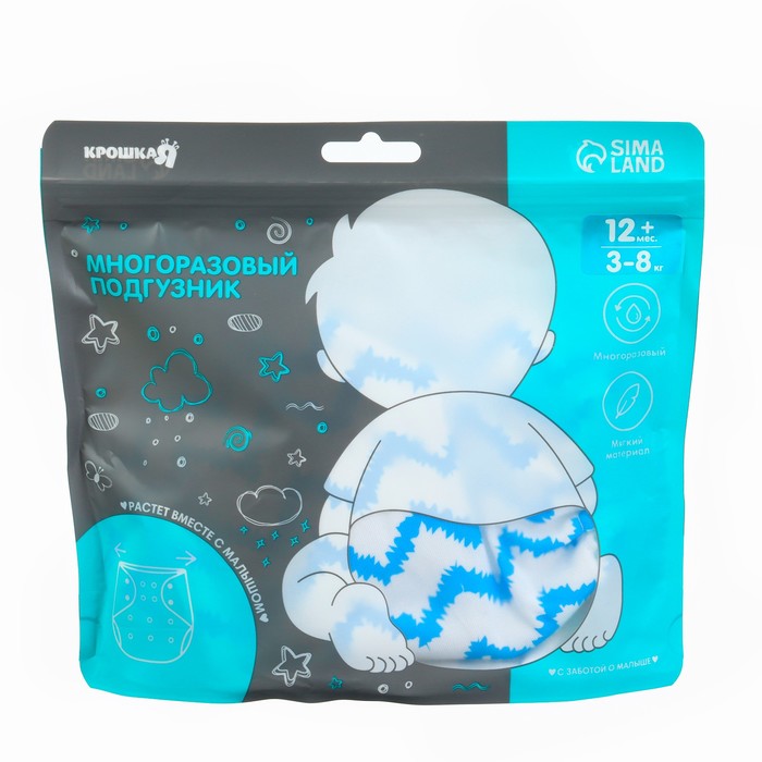Многоразовый подгузник Крошка Я «Зигзаги», 3-15 кг, голубой
