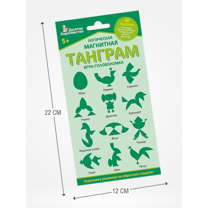 Магнитный танграм «Яйцо» — это увлекательная головоломка из деревянных деталей, подходящая для детей от 5 лет. Идеально подходит для развития логического мышления и пространственного воображения. На упаковке представлены 12 заданий-схем, каждое из которых требует использования всех элементов набора.