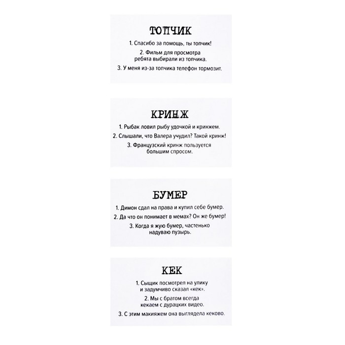Для подростков, родителей, друзей, поклонников мемов и тех, кто хочет «подтянуть» современный сленг. Подходит как подарок, как развлечение на празднике и как способ разрядить атмосферу в любой компании.