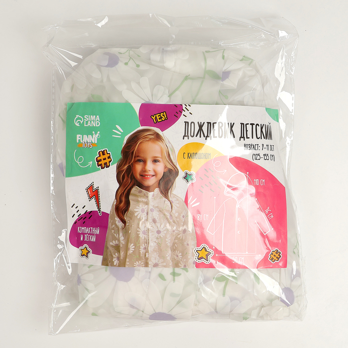 Дождевик детский «Ромашки», рост 125-155 см