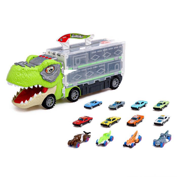 Автовоз-трек «Диногонки», 12 металлических машин, световые и звуковые эффекты