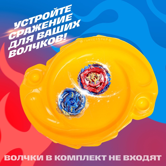 - Яркий дизайн: жёлтый цвет арены добавляет игре динамики и делает её заметной даже в самой яркой игровой комнате. Это не просто поле для битв, а настоящий акцент в мире волчков.