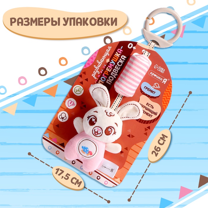 Развивающая погремушка-подвеска «Заяц» разработана специально для малышей от 0 месяцев. Игрушка привлечёт внимание трогательным дизайном и надолго займёт малыша.