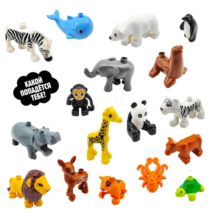Фигурка для конструктора в виде дикого животного добавит играм разнообразия и динамики, дополнит сюжет и поможет проявить фантазию. Ребёнок построит зоопарк, африканскую саванну или холодную антарктиду и поселит там забавных персонажей. В коллекции 17 видов фигурок, но каждая попадается случайным образом. Какое животное придёт вам? Загадка!