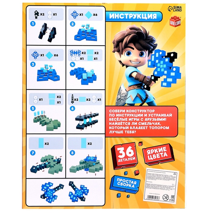 - На обратной стороне коробки есть подробная инструкция — всего 10 простых шагов, и пиксельный меч готов.