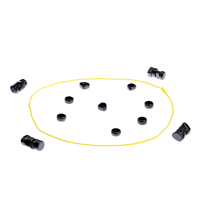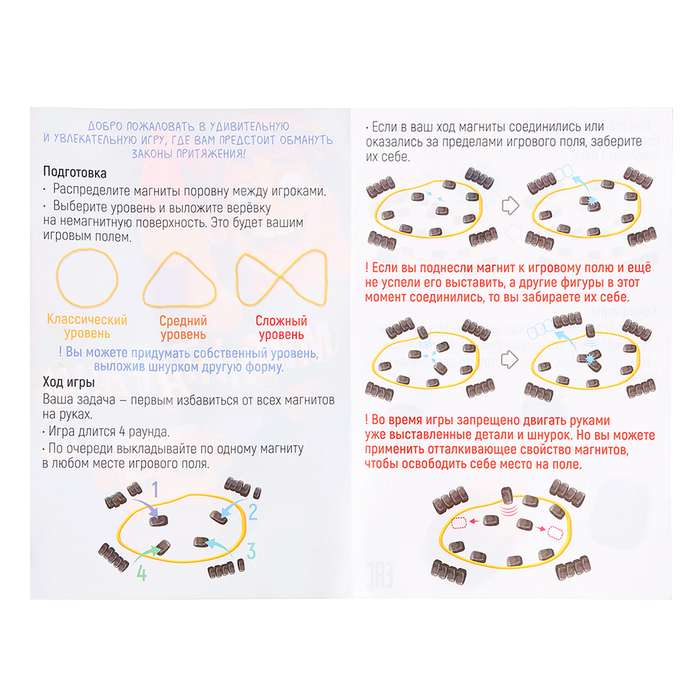 - Разделите 24 магнита между игроками поровну, выложите верёвку на немагнитную поверхность, чтобы создать игровое поле.