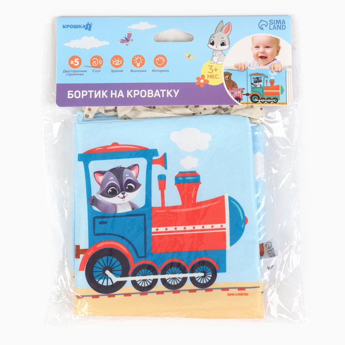 Развиваем малыша с первых месяцев! Мягкая книжка-бортик «Паровозик» — это двусторонняя развивающая игрушка для малышей. Яркие картинки и шуршащие элементы помогают ребёнку познавать мир через тактильные и зрительные ощущения.