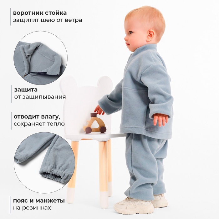 Костюм флисовый детский (джемпер, брюки) MINAKU, рост 92-98 см, серый