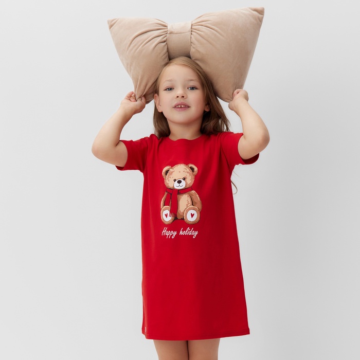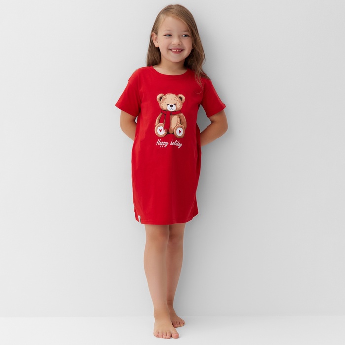 Сорочка для девочки новогодняя KAFTAN «Мишка в шарфе», размер 28 (86-92 см), красная