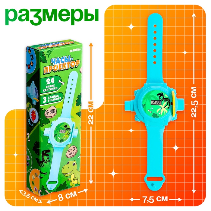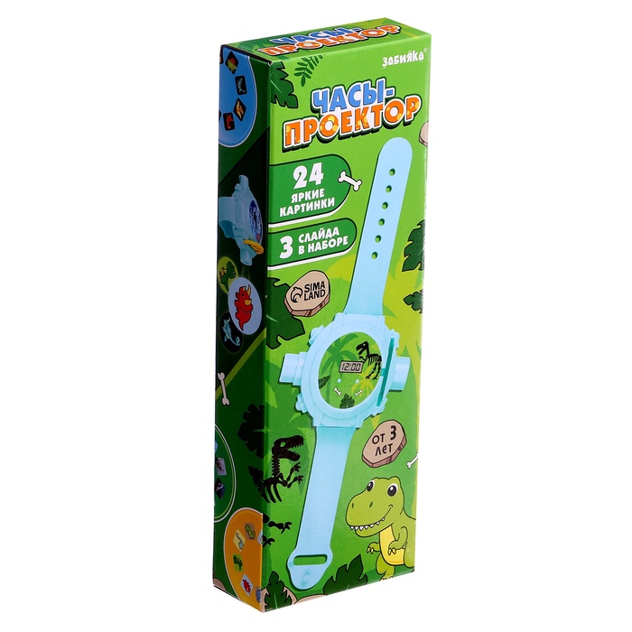 Часы-проектор ZABIAKA «Динозавры», световые эффекты, 24 картинки, голубые