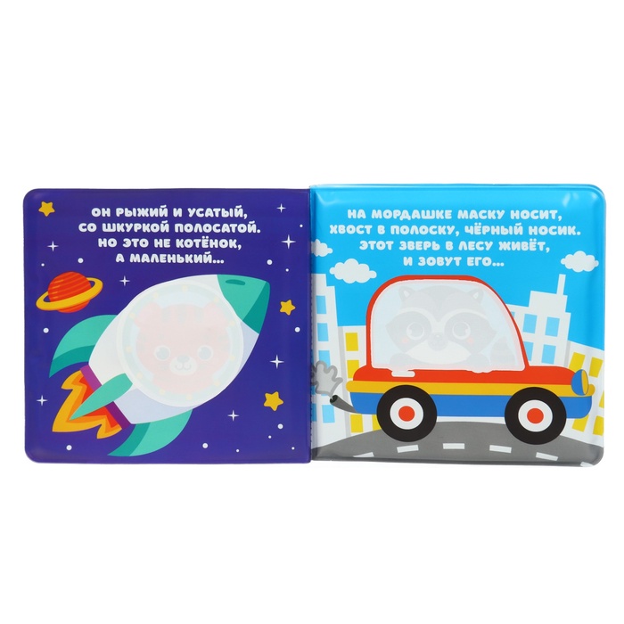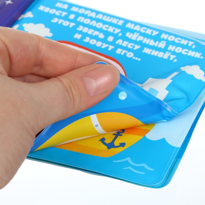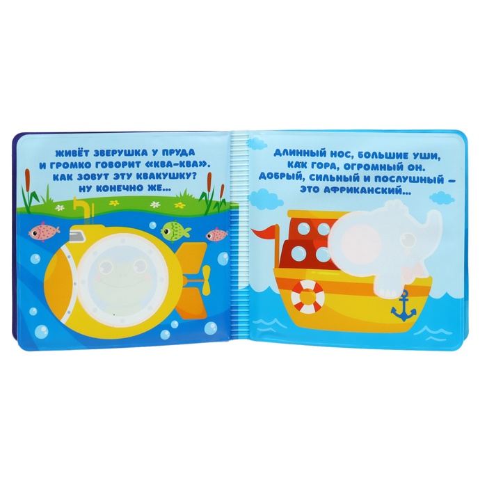 - Книжка выполнена из безопасного материала, который не разрушается под воздействием воды. Она плавает на поверхности, что делает процесс игры комфортным и безопасным для малыша.
