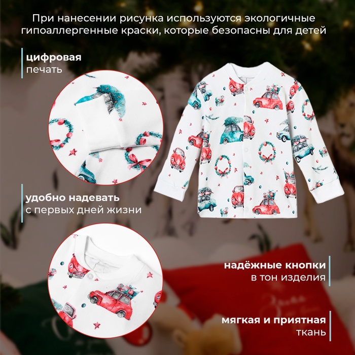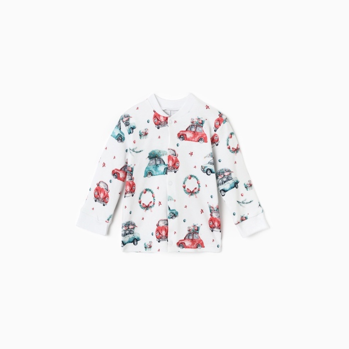 Кофточка детская MINAKU New Year's cars, рост 56-62 см, белая