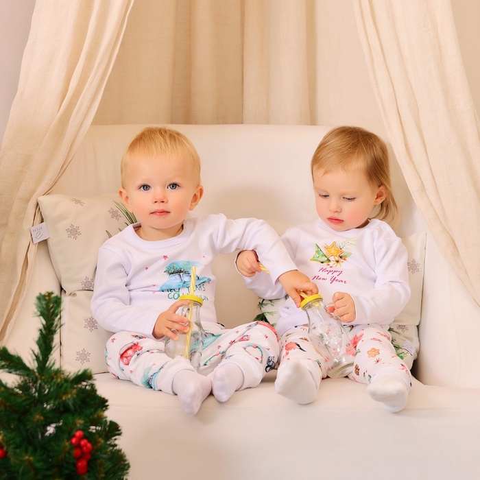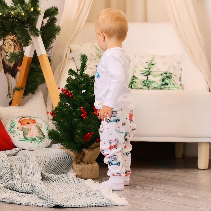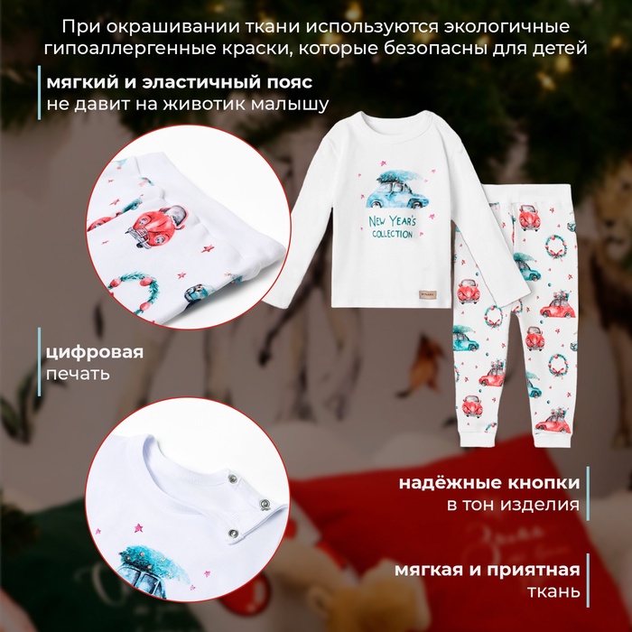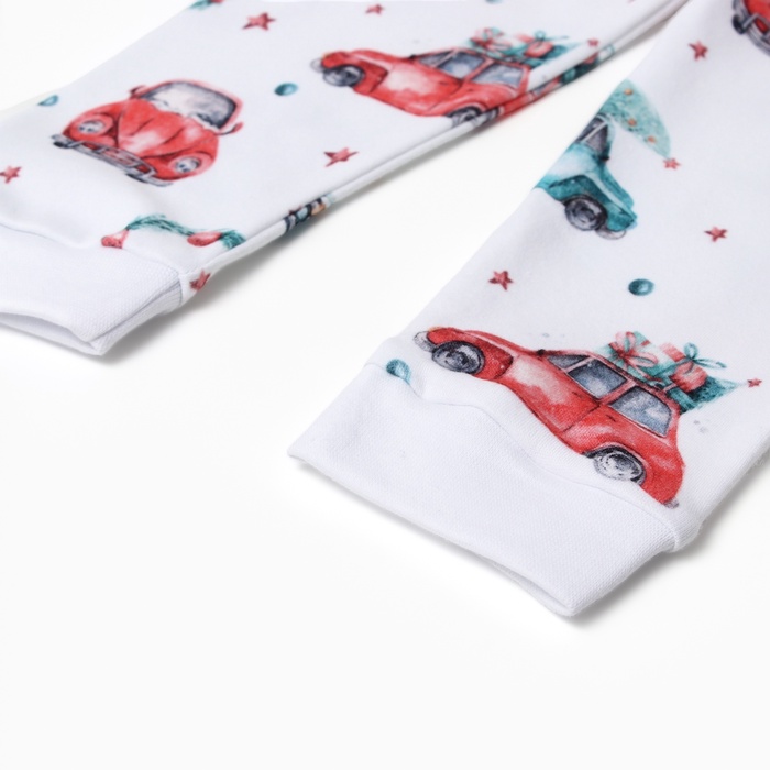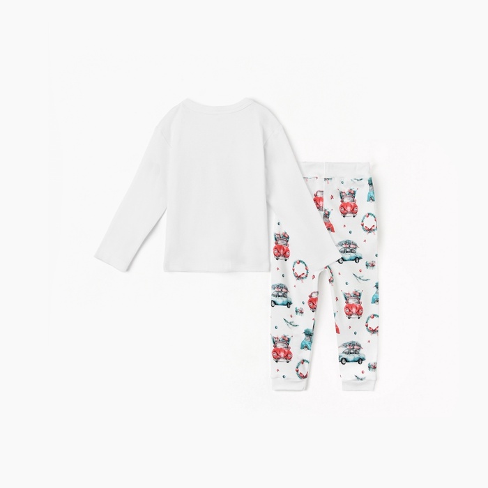 Пижама детская (брюки, лонгслив) MINAKU New Year's cars, рост 62-68 см, белая
