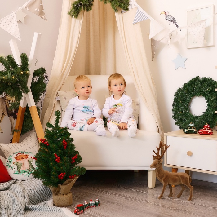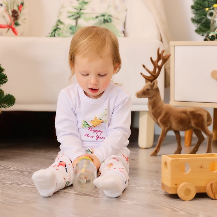 Пижама детская (лонгслив, брюки) MINAKU Winter, рост 62-68 см, белая