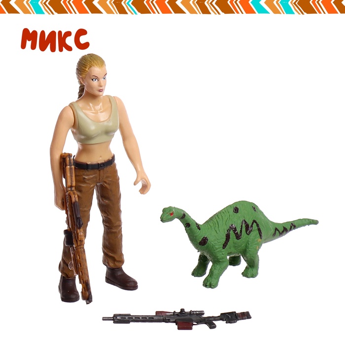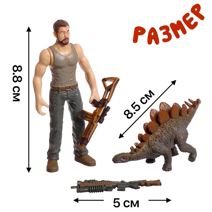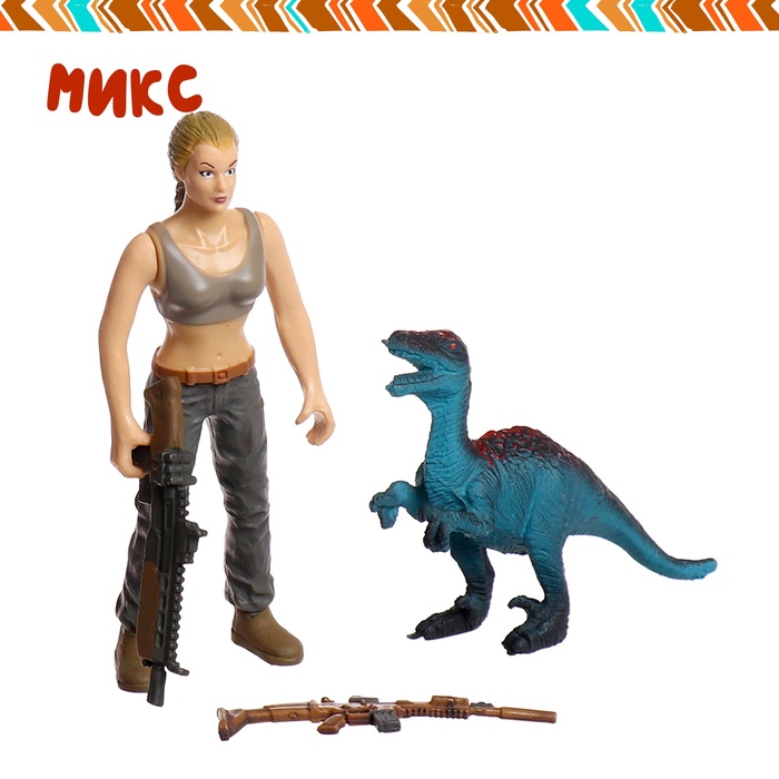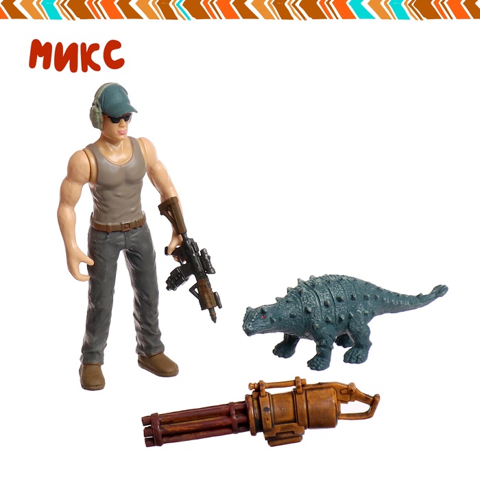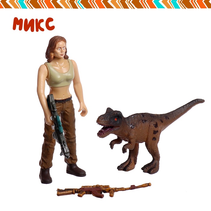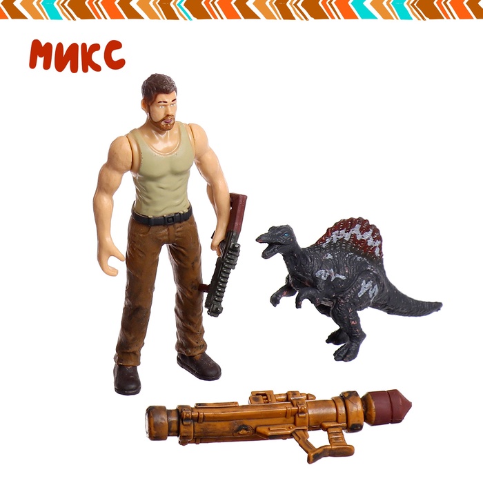 Набор фигурок «Юрский парк», 4 предмета в наборе, с динозавром, подвижные элементы, МИКС