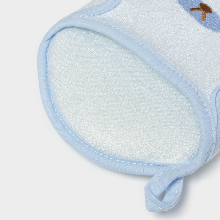 Мочалка варежка детская Доляна «Мишка», для купания, 16 см, голубая
