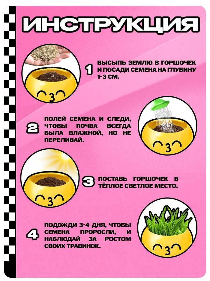 Подходит для детей от 3 лет, для занятий дома или в детских образовательных учреждениях. Горшочек с забавным дизайном станет украшением детской комнаты и добавит радости в процесс выращивания.