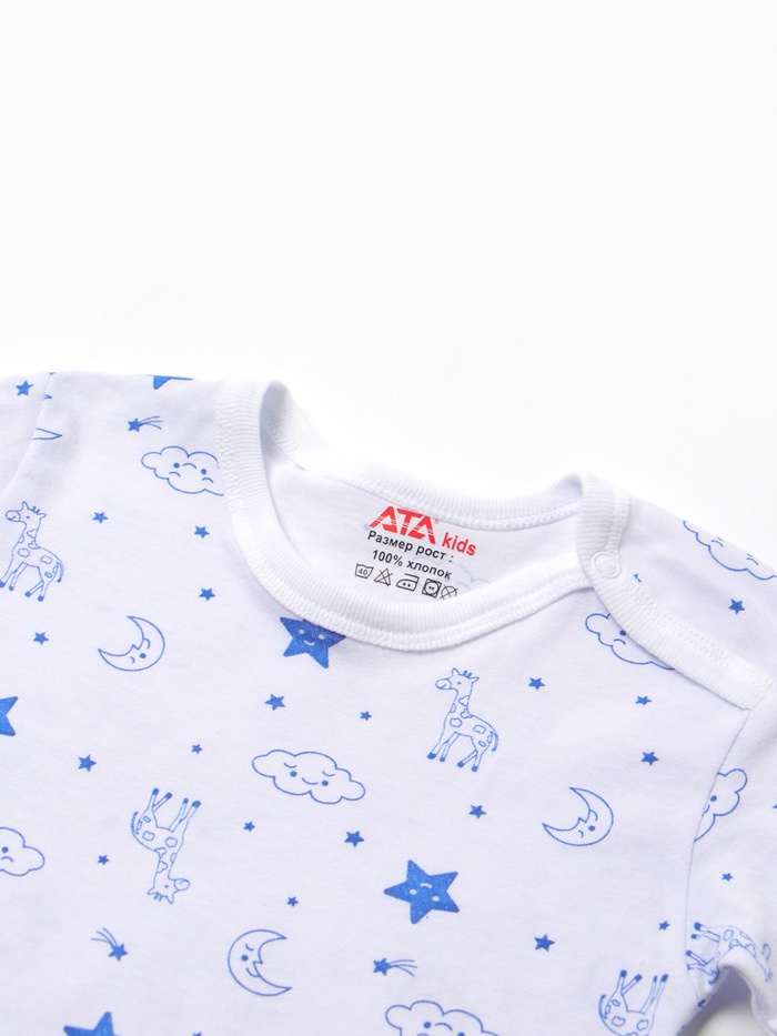 Футболка детская на кнопках «Жирафы», рост 68 см, белый, синий