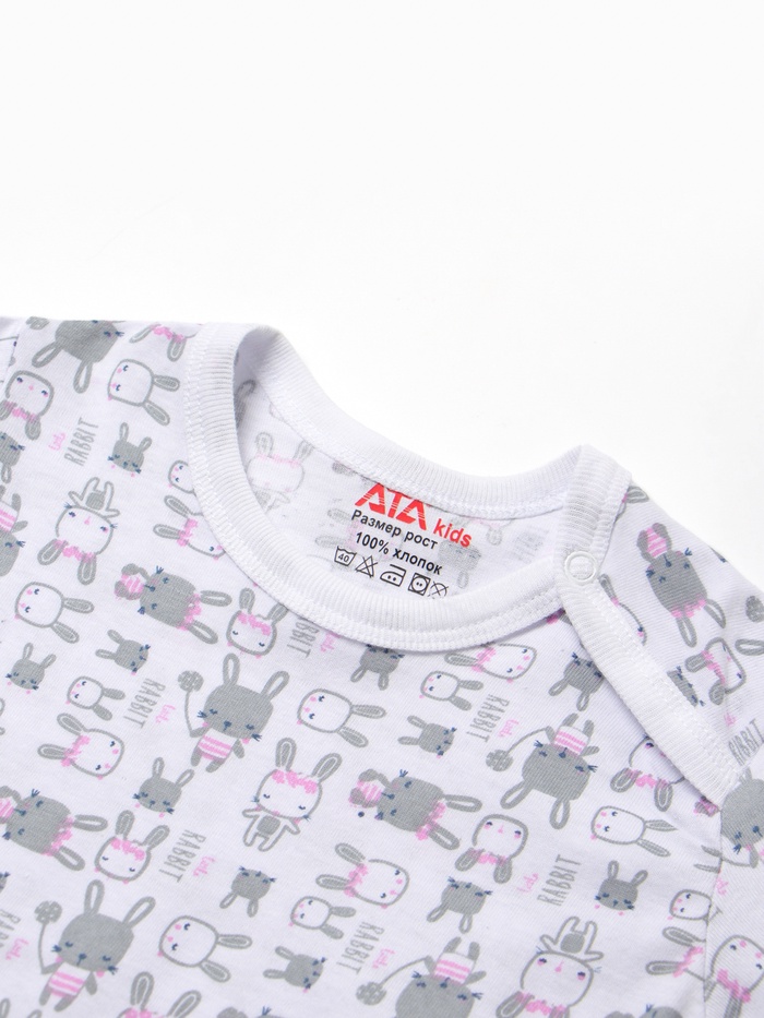 Футболка детская на кнопках «Зайки», белая, розовая, рост 62 см